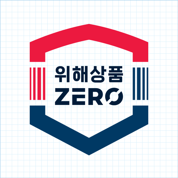 위해상품을 차단한다는 의미를 공격을 막는 방패로 시각화한 육각의 라인 모티브