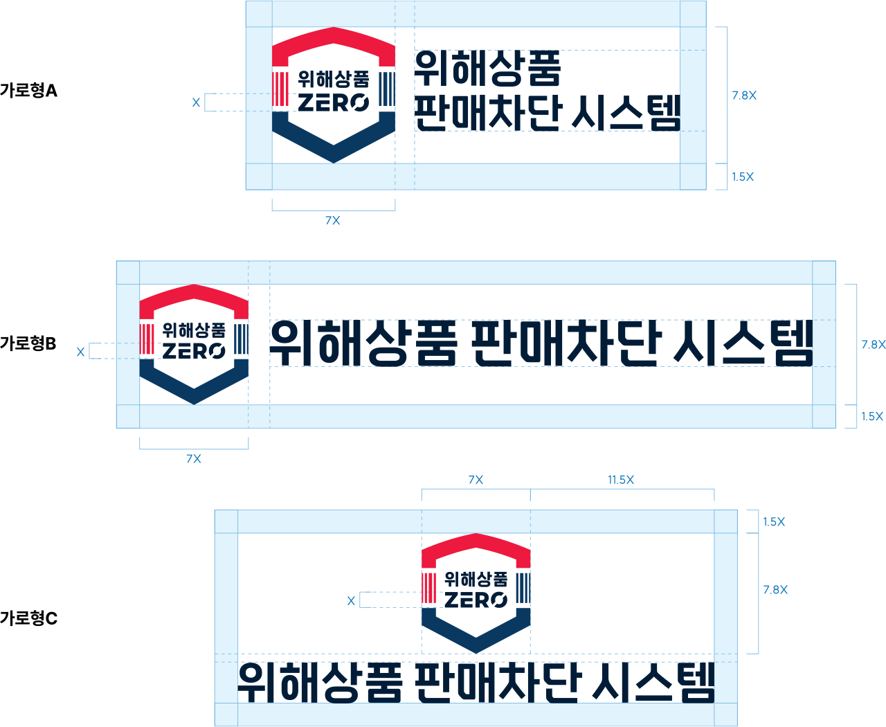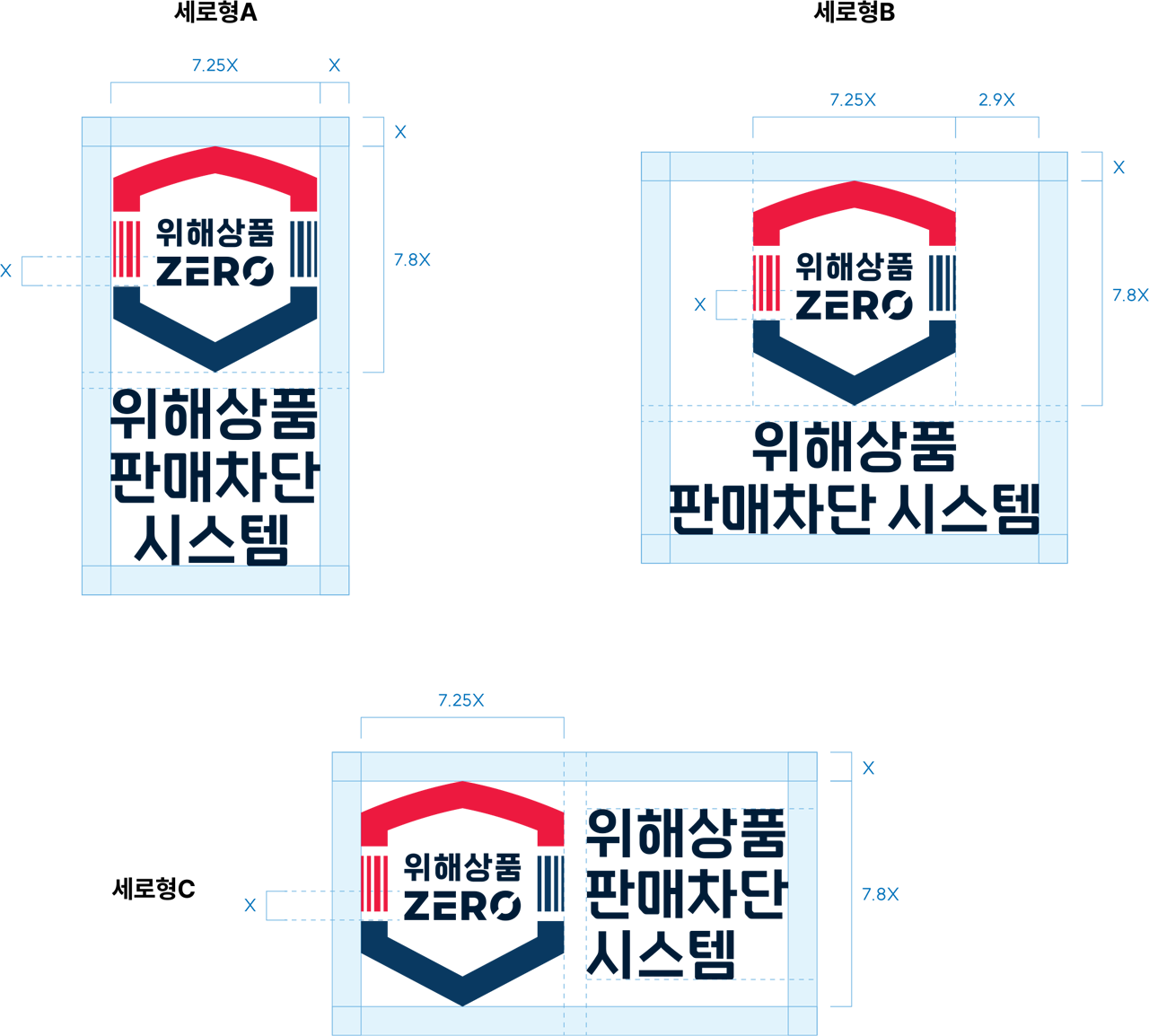 위해상품 판매차단 시스템 인증마크를 보호하기 위한 공간이므로, 다른 그래픽 요소와의 간격은 지정된 최소 여백 이상을 유지해야 합니다.