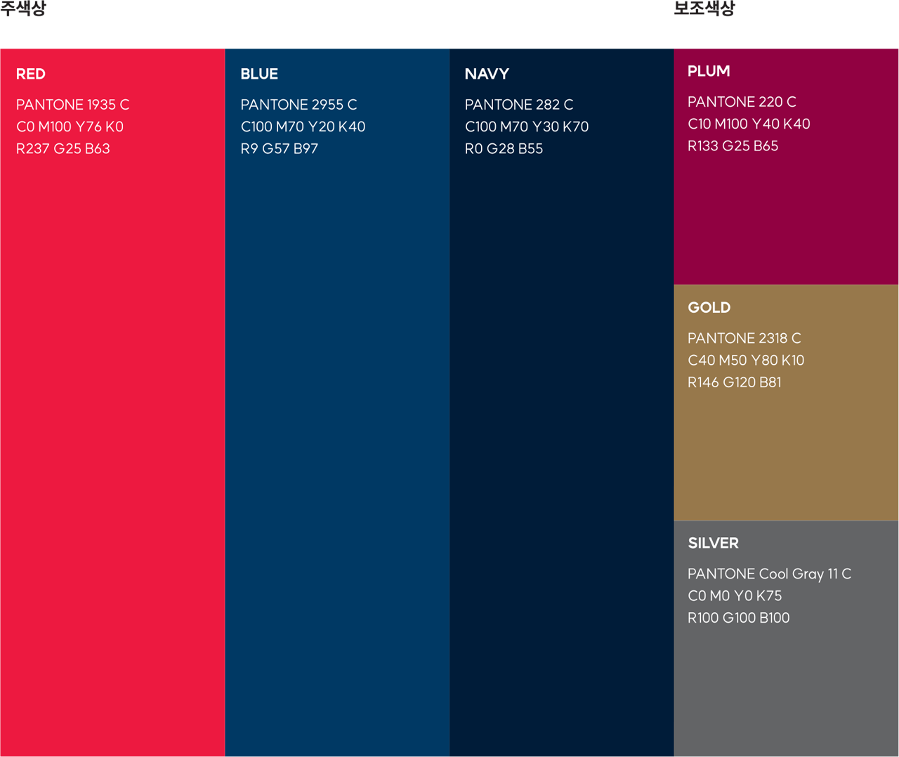 위해상품 판매차단 시스템 인증마크의 전용색상은 주색상과 보조색상으로 구성되며 심볼, 로고타입과 함께 인증마크 디자인의 핵심요소입니다.